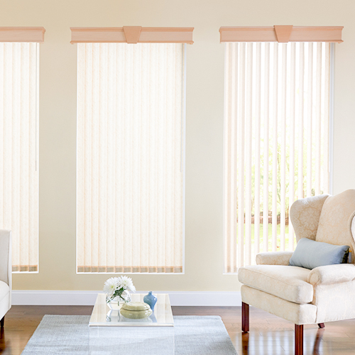 垂直帘因叶片一片片垂直悬挂于上轨而得名,可左右自由调光达到遮阳目的。